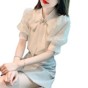宫廷风雪纺短袖衬衫女士夏季减龄洋气小衫2025新款爆款泡泡袖上衣