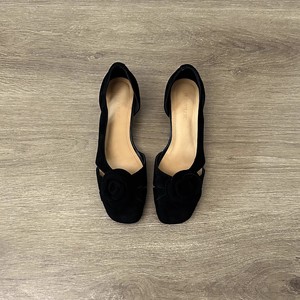 在庫あり〜フレンチエレガントなレトロスタイルのスクエアトゥカメリアパンプスレディース新作太ヒール中空サンダル