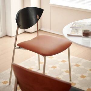 ブラックの背もたれ - ブラウンのシートクッション - マットレザー - 電気メッキ脚