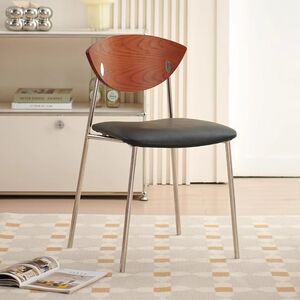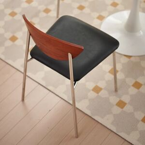 ウォールナット背もたれ - ブラックシートクッション - マットレザー - 電気メッキ脚