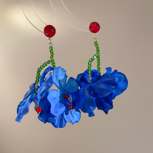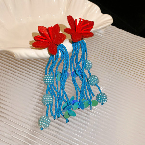 ホリデースタイルのコントラストカラーの花ビーズタッセルイヤリング女性用レトロエスニックスタイルライト高級イヤリングデザインニッチイヤリング
