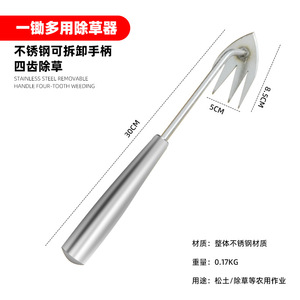 不锈钢木柄30cm四齿v头除草器(加强款)