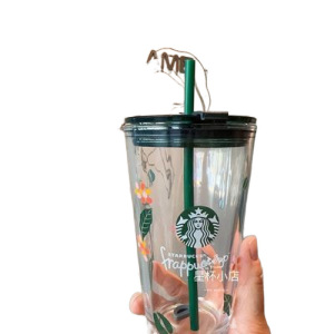 デスクトップクラシックストローカップガラスストローカップガラスカップ新製品450ML