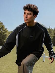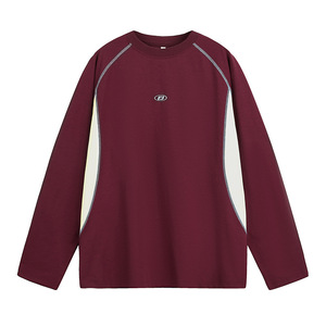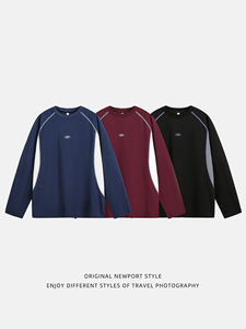 日焼け止め通気性コントラストカラーステッチスポーツスタイル長袖Tシャツメンズ秋の新作トレンディなブランド刺繍ルーズスウェットシャツ