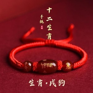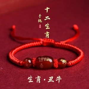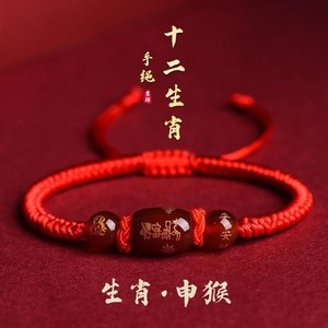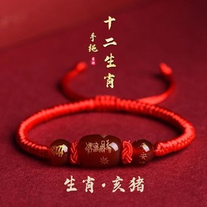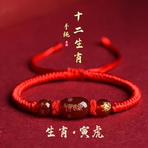 2026马年本命年化解红绳手链十二生肖虎猴猪龙编织玛瑙手绳男女礼