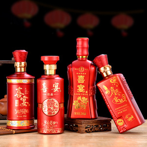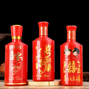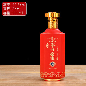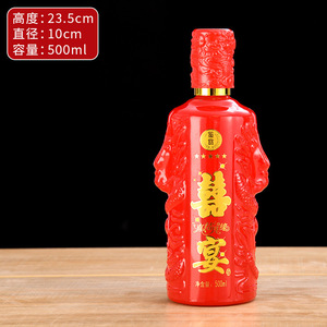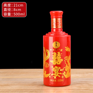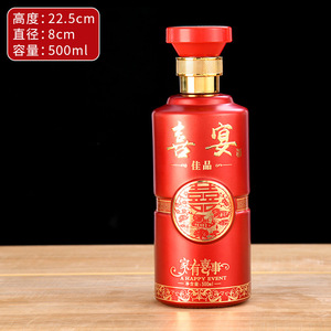 高端白酒瓶家用婚宴酒瓶玻璃空瓶一斤装密封带盖烤花喷漆喜宴瓶子