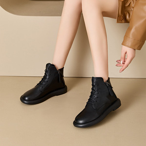 2025软底英伦风真皮马丁靴女秋冬平底复古短靴子休闲侧拉链女靴