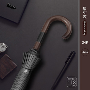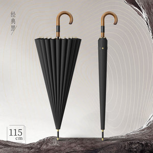 24骨长柄雨伞男士木柄直杆伞自动加大加厚加固结实抗风暴雨专用