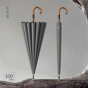 16骨曜石黑【木弯柄】【纤维伞骨】