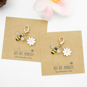 国境を越えて人気の高い、爽やかなデイジーのメタルキーホルダー、キュートなダイヤモンドをあしらった小さな蜂の合金製ジュエリー、亜鉛合金