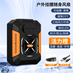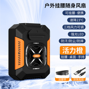 屋外建設現場用のクロスボーダー腰掛けファン、夏を涼しく保つためのポータブル腰掛けファン、USBミニ高速ファン