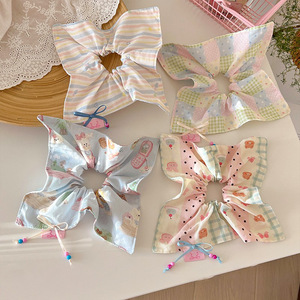 甘いリボンストライプスクエアスカーフ女性用大腸ヘアバンド高弾性ポニーテールゴムバンドヘアロープかわいいヘッドバンドヘアアクセサリー