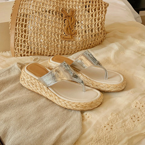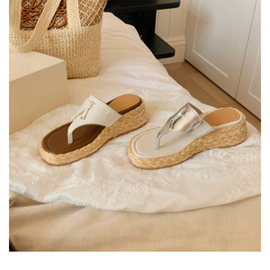 グレープママと同じスタイル〜レトロスタイルのわら編みビーチサンダル、女性用サンダル、柔らかい底、麻ロープで高さを高めます