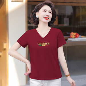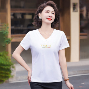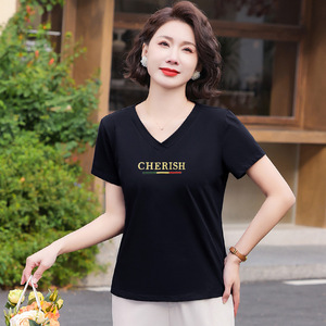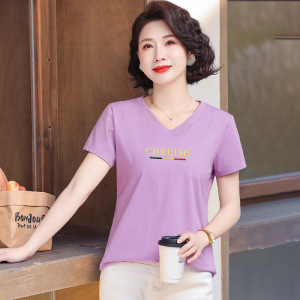 Vネック半袖Tシャツレディース2025新作夏スリムフィット半袖Tシャツ洋風ママ万能トップス