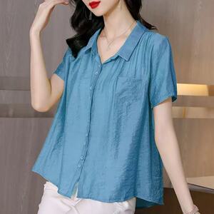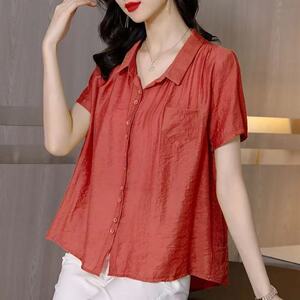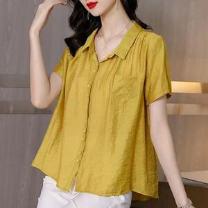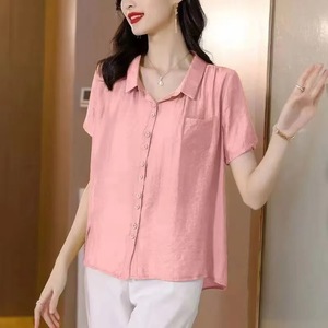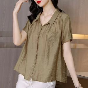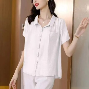 高端棉麻短袖女衬衫新款宽松遮肚气质衬衣洋气妈妈装时尚减龄上衣