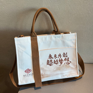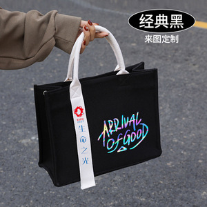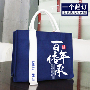帆布袋定 制印logo礼品手提高端加厚飘带学校校庆宣传商务帆布袋