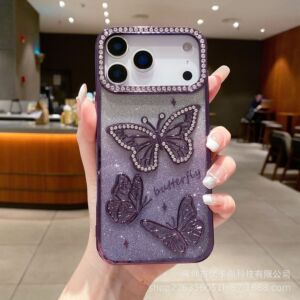 iPhone17promax電気メッキ携帯電話ケース立体バタフライフラッシュダイヤモンドApple 16グラデーショングリッター保護カバーに適しています。