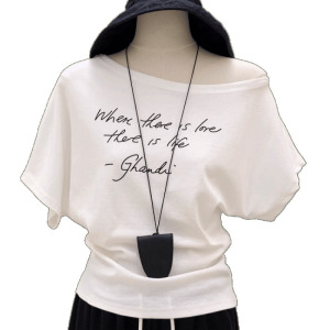 アメリカンホットガールファッションレターオフショルダー半袖Tシャツレディース2025夏新作オフショルダーリラックストップイン
