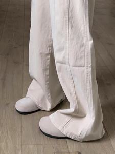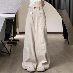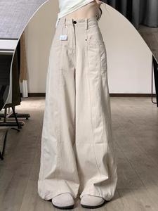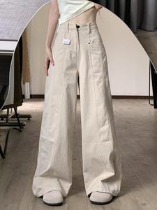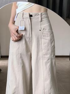 杏色工装牛仔裤女夏季慵懒松弛感高腰直筒显瘦弯刀镰刀阔腿长裤子