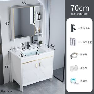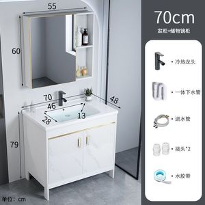 升级70落地白金柜陶瓷盆+毛巾镜柜【48宽】-