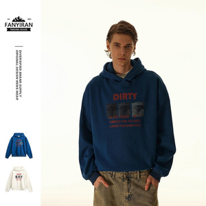 OUSWE原创潮牌美式连帽卫衣男秋季设计感印花宽松帽衫上衣RH47
