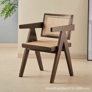 昌迪加尔藤编餐椅做旧中古诧寂风椅子家用靠背椅白蜡复古实木茶椅