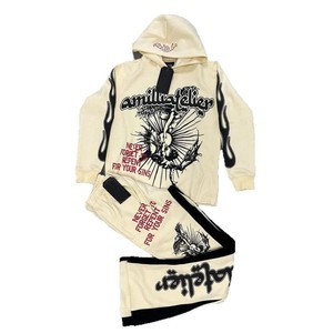 跨境美式潮男卫衣卫裤春秋季新款 男士时尚连帽数码印花长裤套装