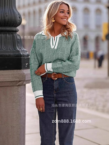 セーターカスタマイズされたクロスボーダー婦人服 2024 ヨーロッパとアメリカのアマゾン秋冬貿易カジュアルストライプ V ネック長袖セーター