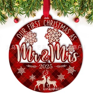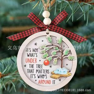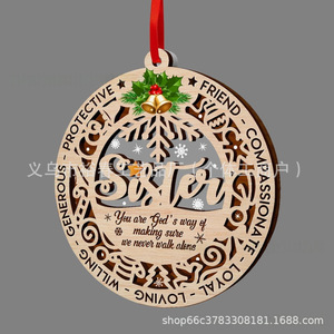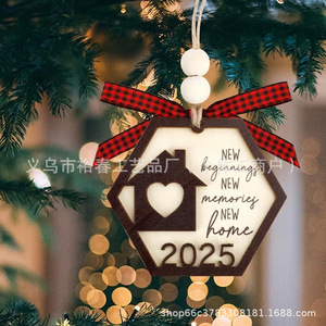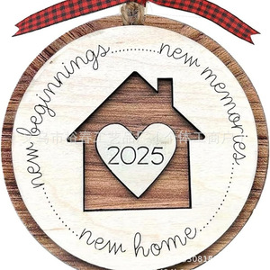 跨境新房乔迁礼物圣诞树挂件双层雕刻木质工艺品创意家居装饰礼品