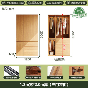【1.2m长*2.0m高】三门衣柜【全实木】ENF级