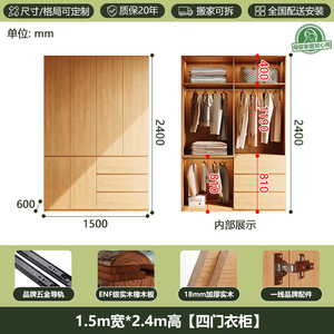 【1.5m长*2.4m高】四门衣柜【全实木】ENF级