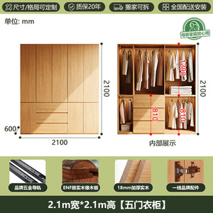 【2.1m长*2.1m高】五门衣柜【全实木】ENF级