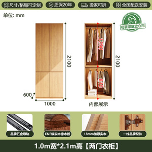 【1.0m长*2.1m高】两门衣柜【全实木】ENF级