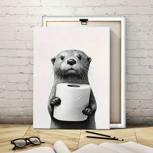 TEMU热销迷人的水懒浴室挂画喷绘帆布海报趣味动物洗手间装饰画