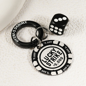 国境を越えた売れ筋テキサス ラッキーストライク バックストレート ステンレススチール チップ ダイス キーホルダー ペンダント