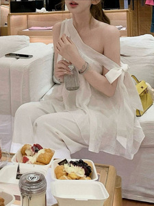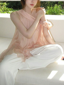 DoggyQn 京都ホリデー/デザインオフショルダーテンセルシャツレディースサマーリボンスイートスリムトップ