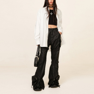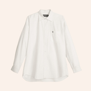 SMFK十字古典衬衫于文文同款刺绣纯色宽松极简上衣