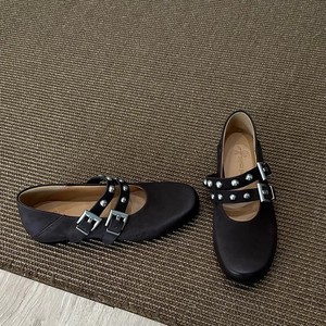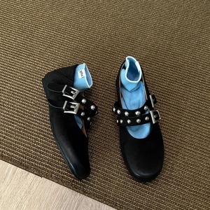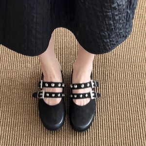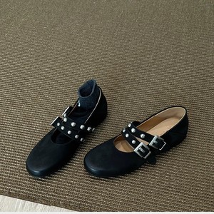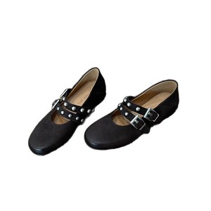 スポットレトロラウンドトゥダブルバックルフラットメリージェーンシューズレディースバレエシューズカジュアル多用途インナー高さ靴
