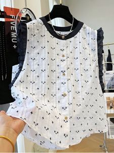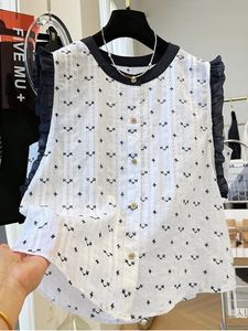 韩系边小飞袖重工刺绣无袖小衫上衣女夏季超好看外穿背心拼接