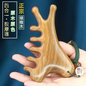 多功能四合一按摩梳头部脱发头疗刮痧疏通经络头皮脸部眼部檀木梳