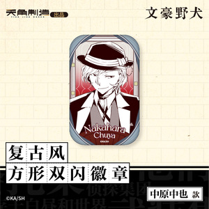 正版 天闻角川 文豪野犬 复古风方形双闪徽章 中原中也 动漫周边