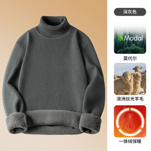 650 グラムヘビーウールモーダルタートルネックニットセーターメンズ秋冬ベルベット厚く暖かいインナーレイヤリングシャツ