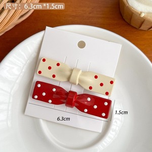 秋冬安哥拉红蝴蝶结发夹套装简约刘海侧边发卡甜美少女心头饰百搭