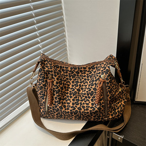 2025新款休闲时尚豹纹通勤韩系大容量女士洋气单肩斜挎腋下托特包