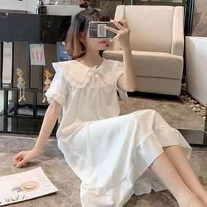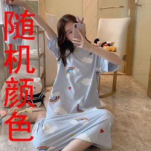 可爱日系甜美ins风长款睡裙女夏季短袖睡衣连衣裙家居服过膝长裙