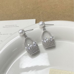 hw-编织花篮锆石珍珠耳环