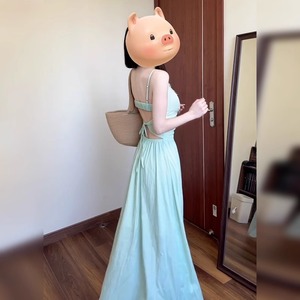 2025 新しいフランスの美しいサスペンダードレス女性の夏の小さな海辺の休暇気質妖精のロングドレス