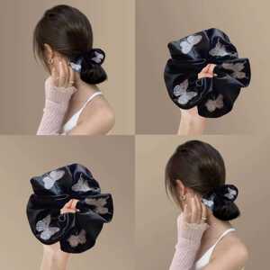 气质高级感刺绣蝴蝶缎面大肠发圈女2025新款高弹力发绳后脑勺头绳