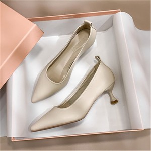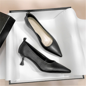 香港软真皮高跟鞋女细跟2025年新款百搭春秋季中跟法式单鞋不磨脚