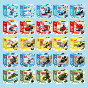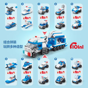 兼容乐高积木10合1男孩拼装玩具飞机警察军事航母坦克消防车批发